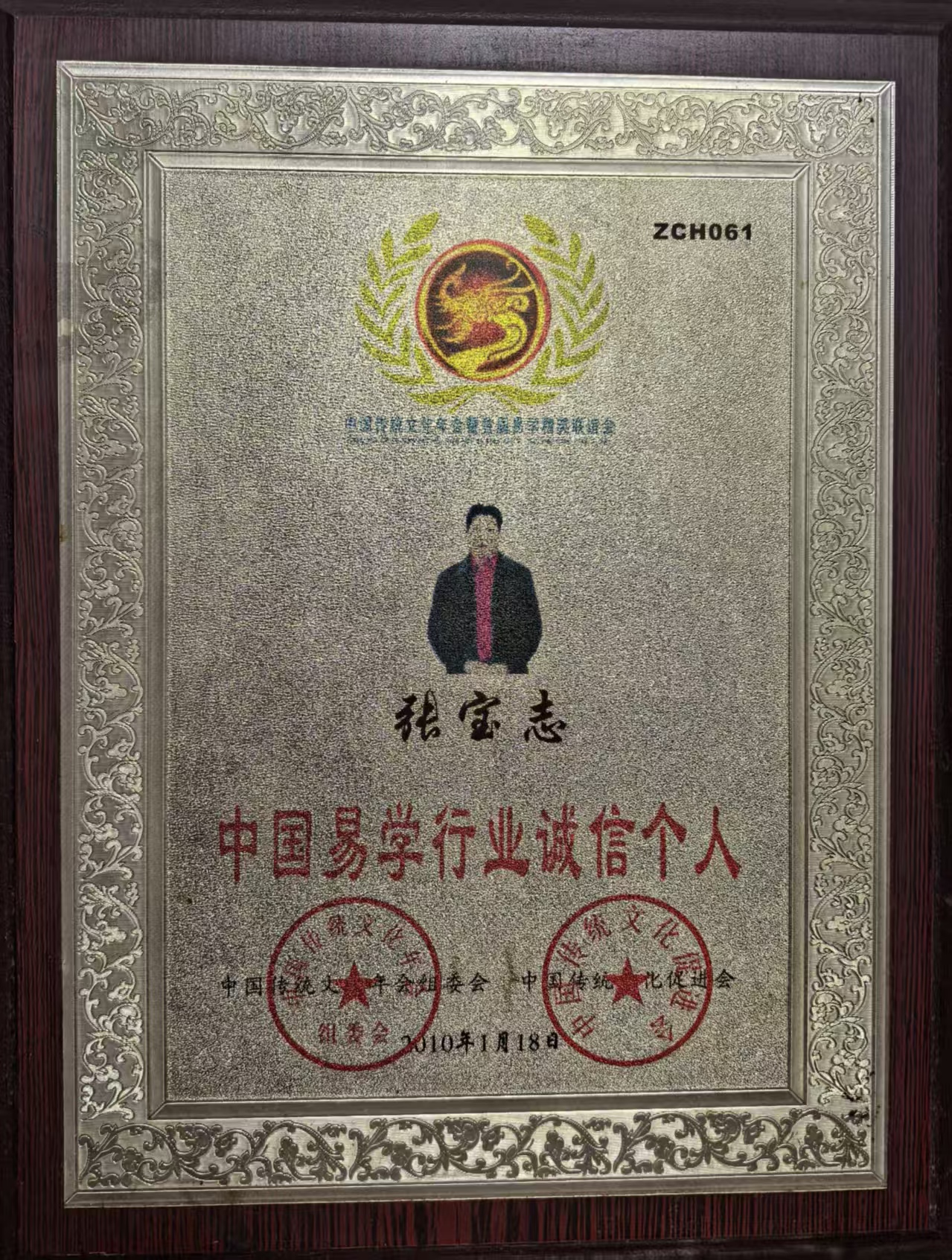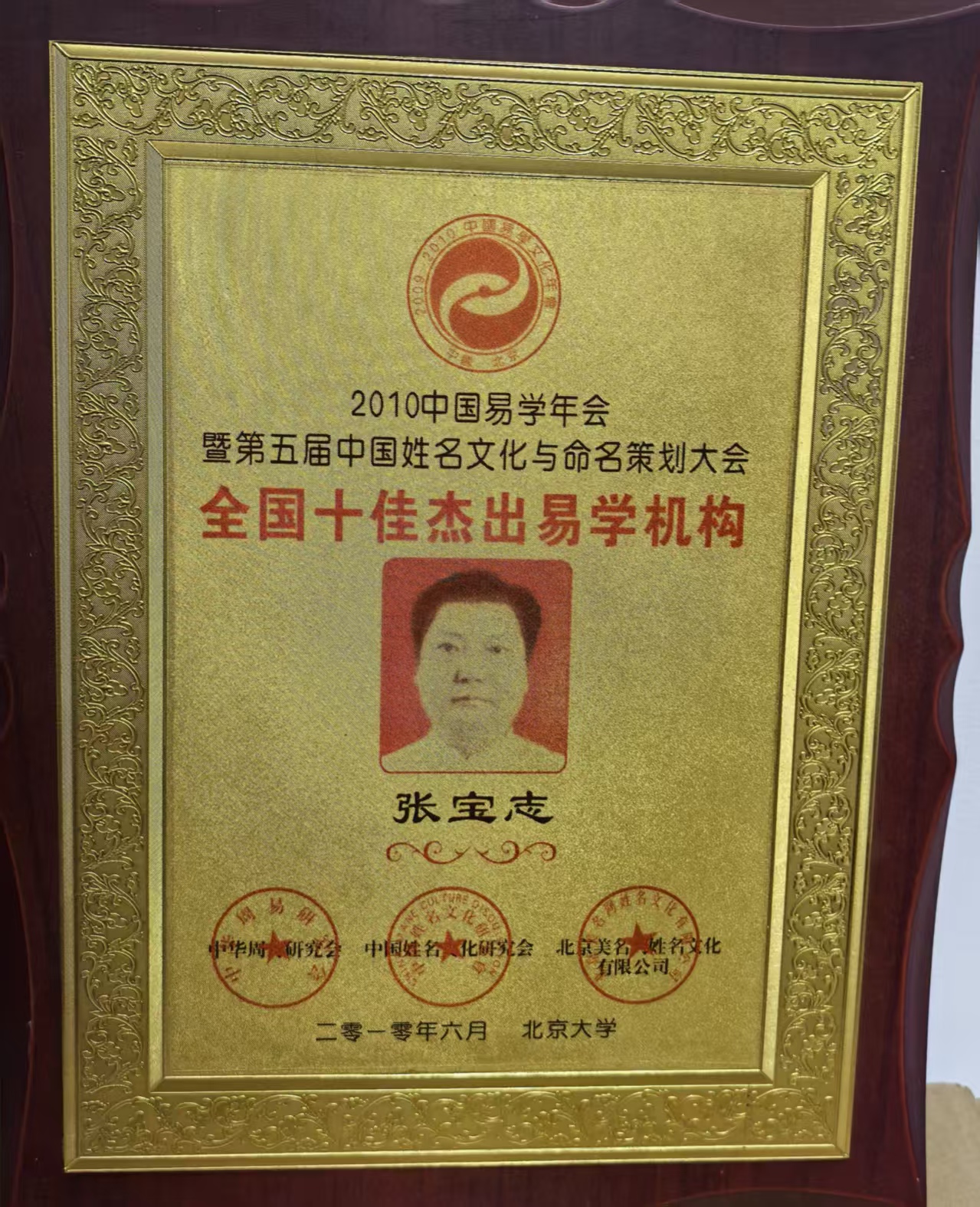 2010年,在中国易学年会暨第五届中国姓名文化与命名策划大会中被授予“全国十大权威命名策划专家”“中国优秀择日大师”称号。
