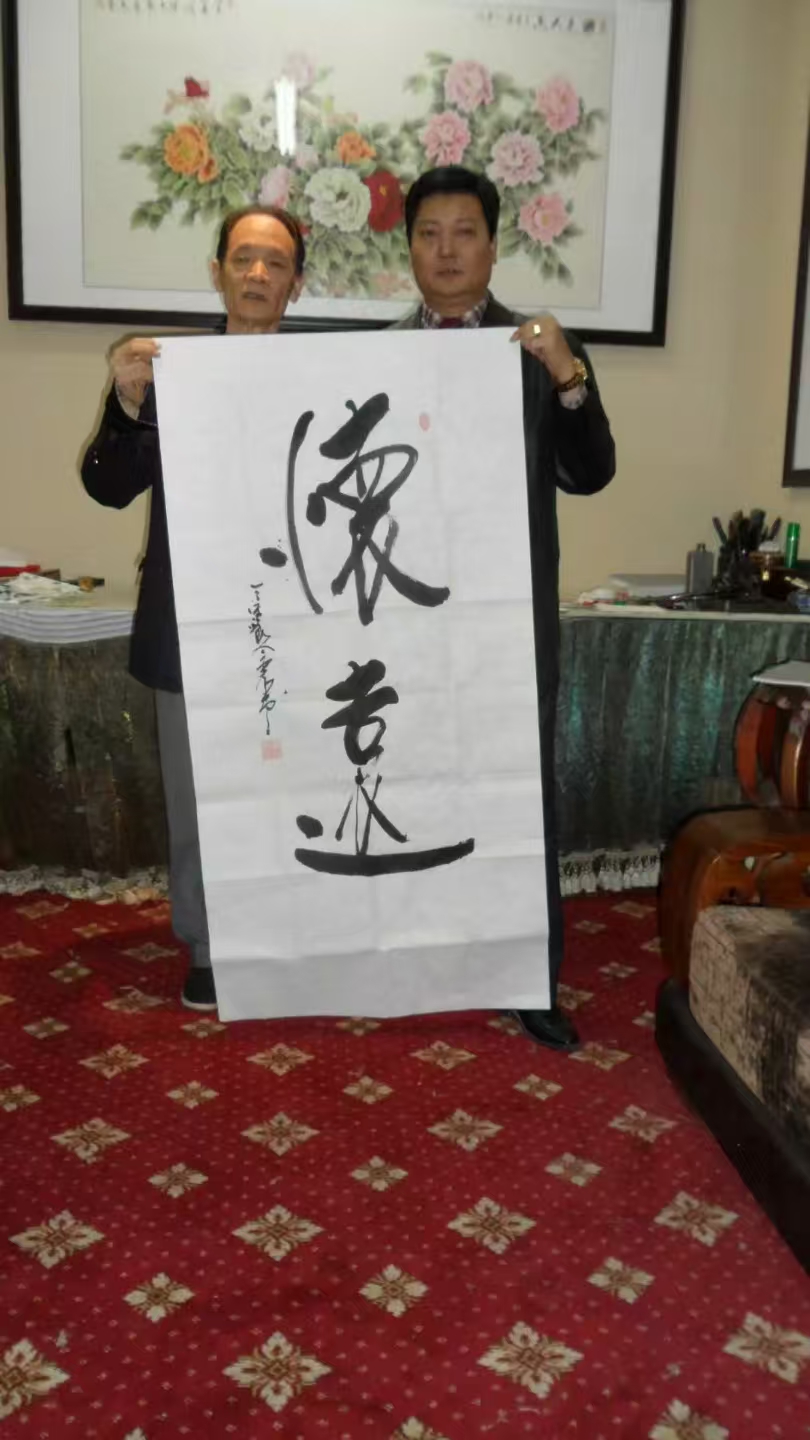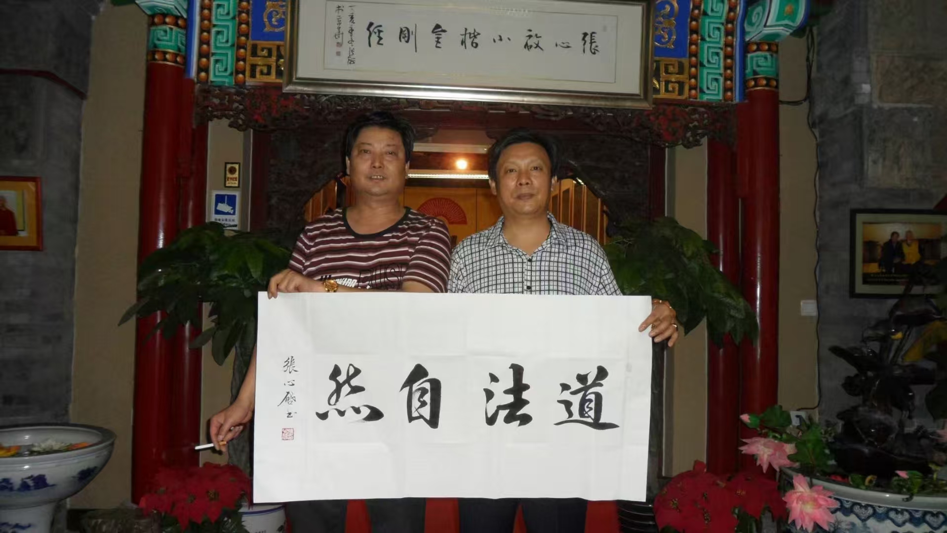 著名书法家、诗人娄德平为张宝志大师题字并合影 张宝志风水大师与梁永和国画大师合影