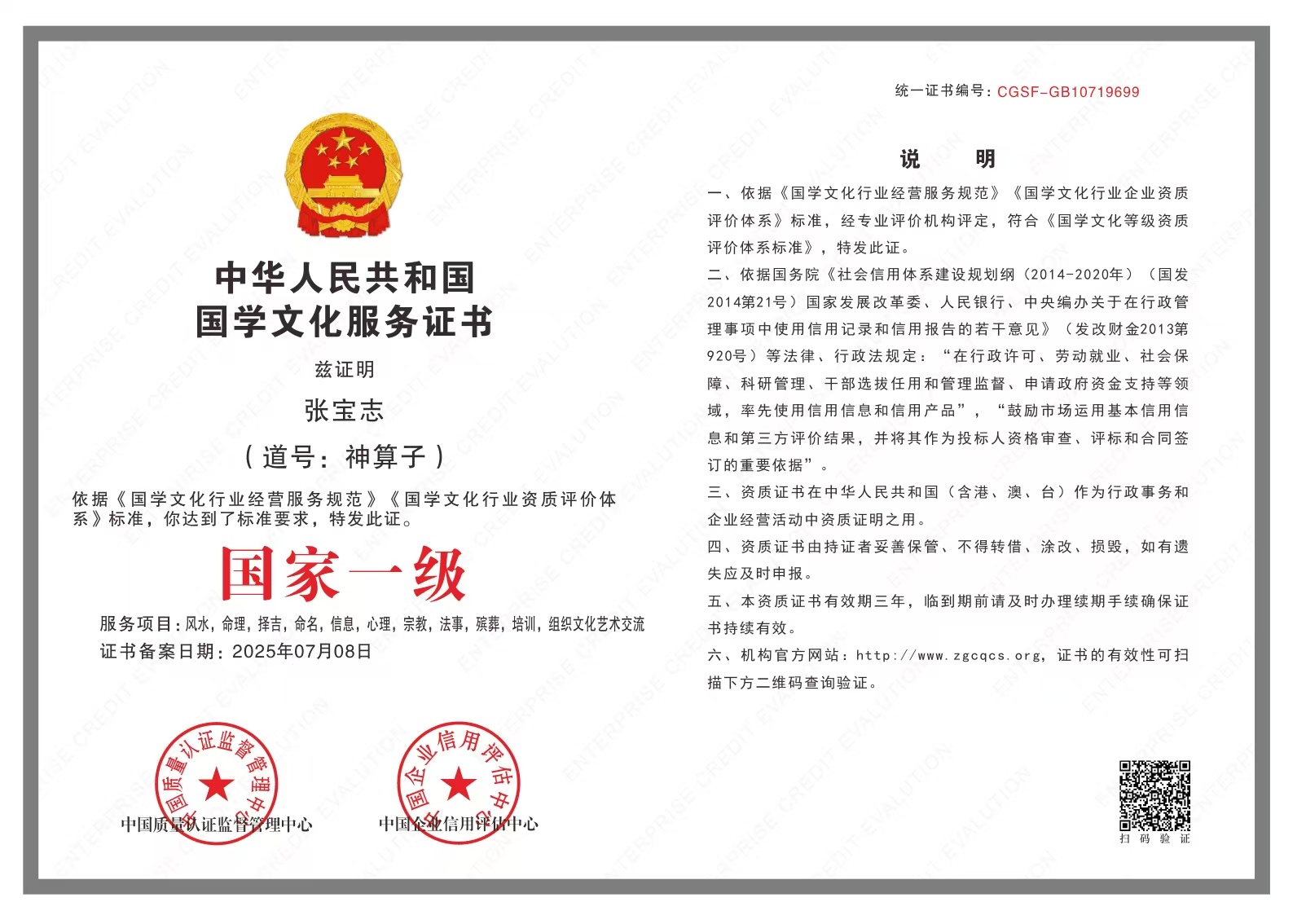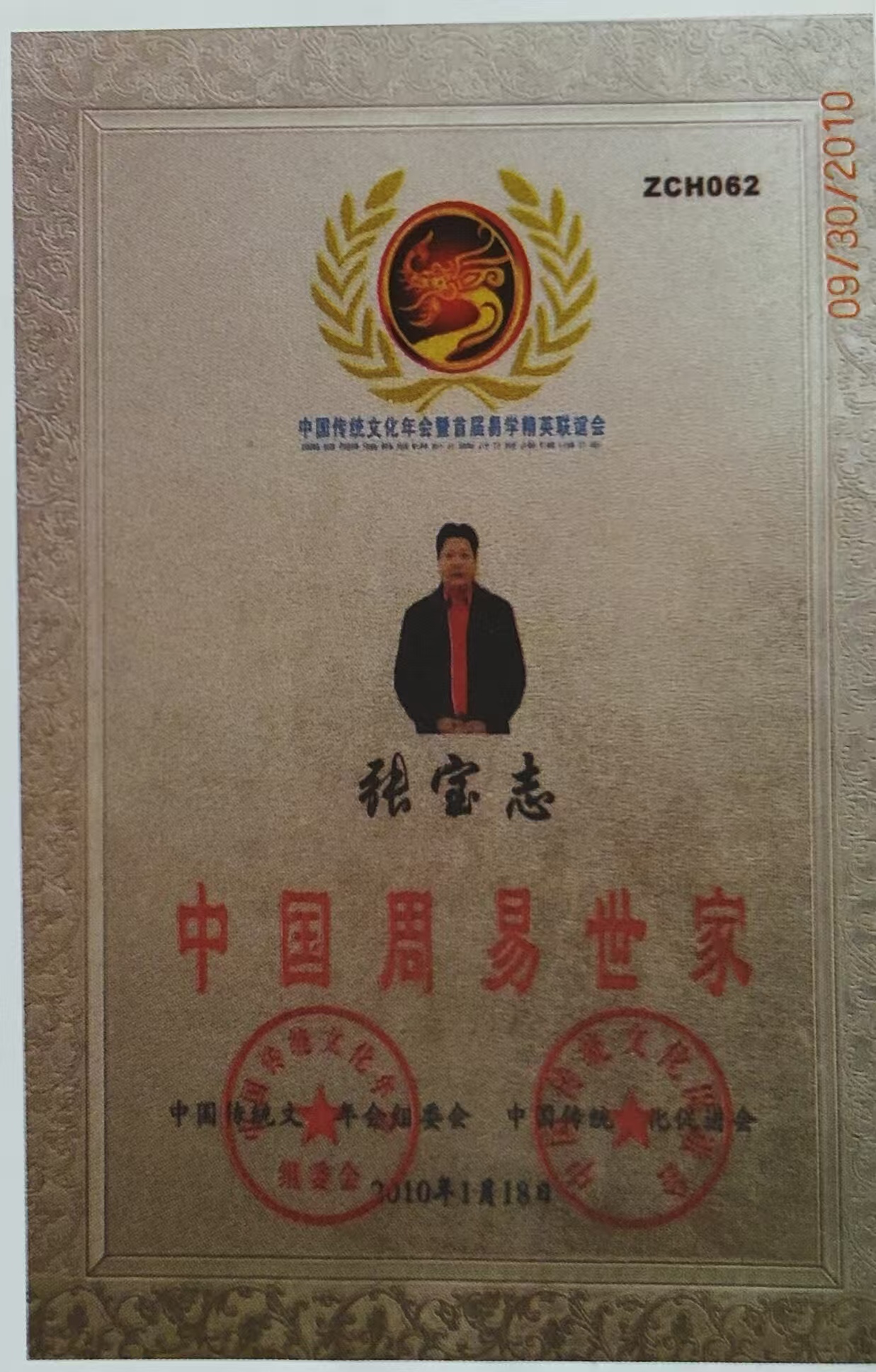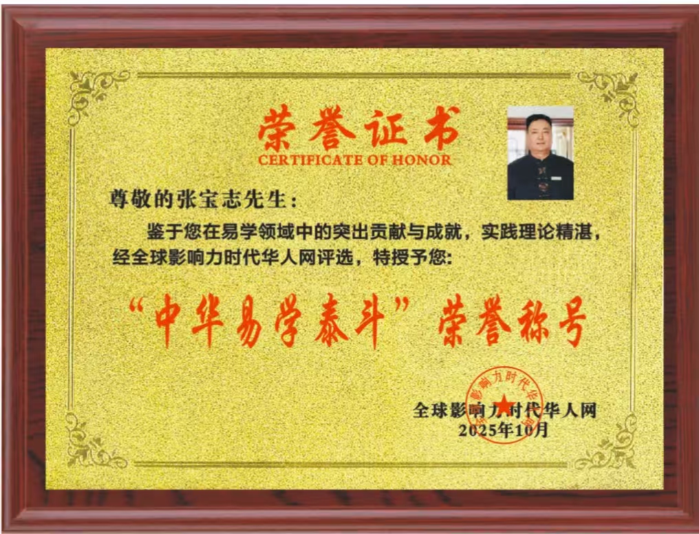 2025年张宝志被评为国家级高级国学传承师,中国传统文化促进会颁发职业认证证书。